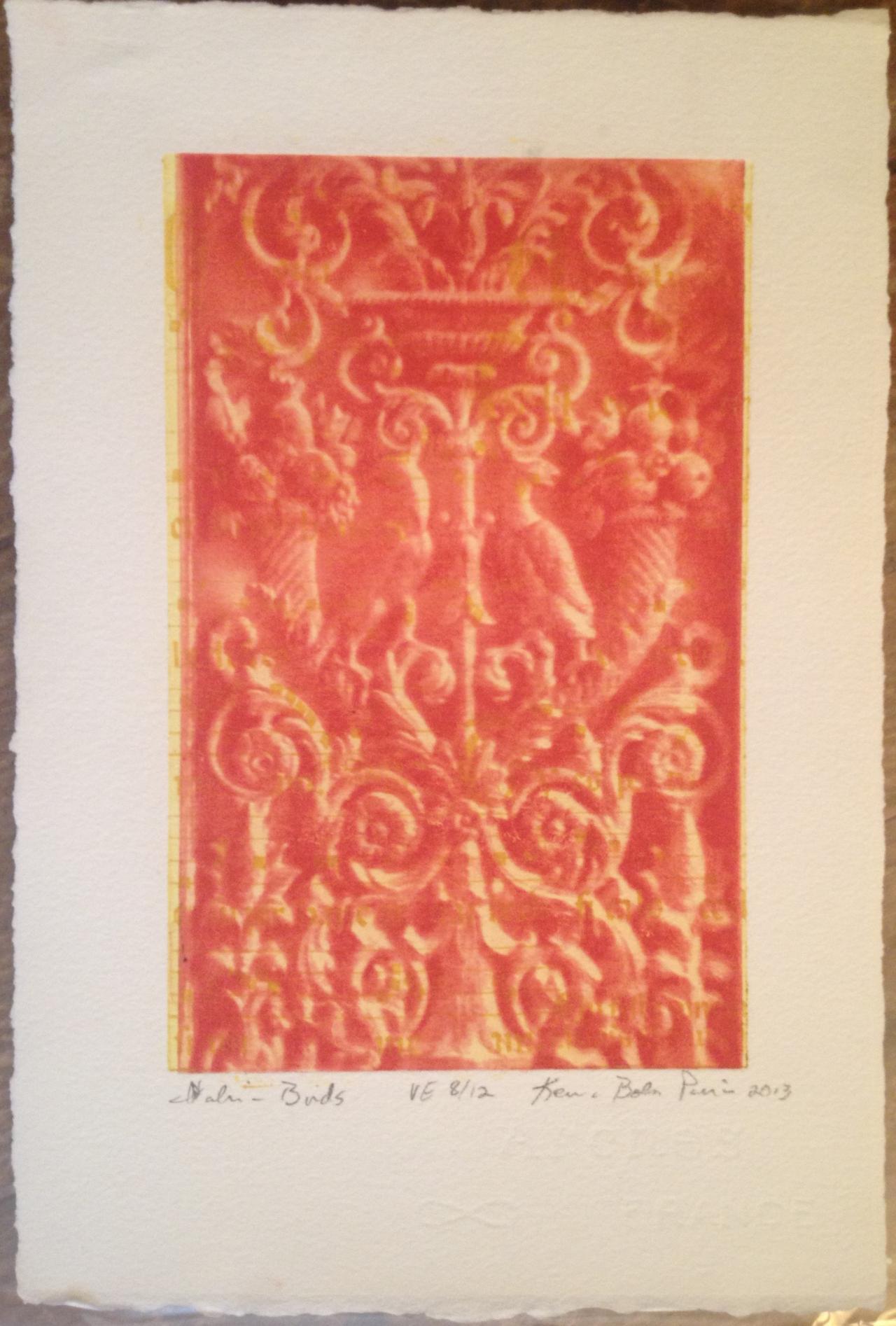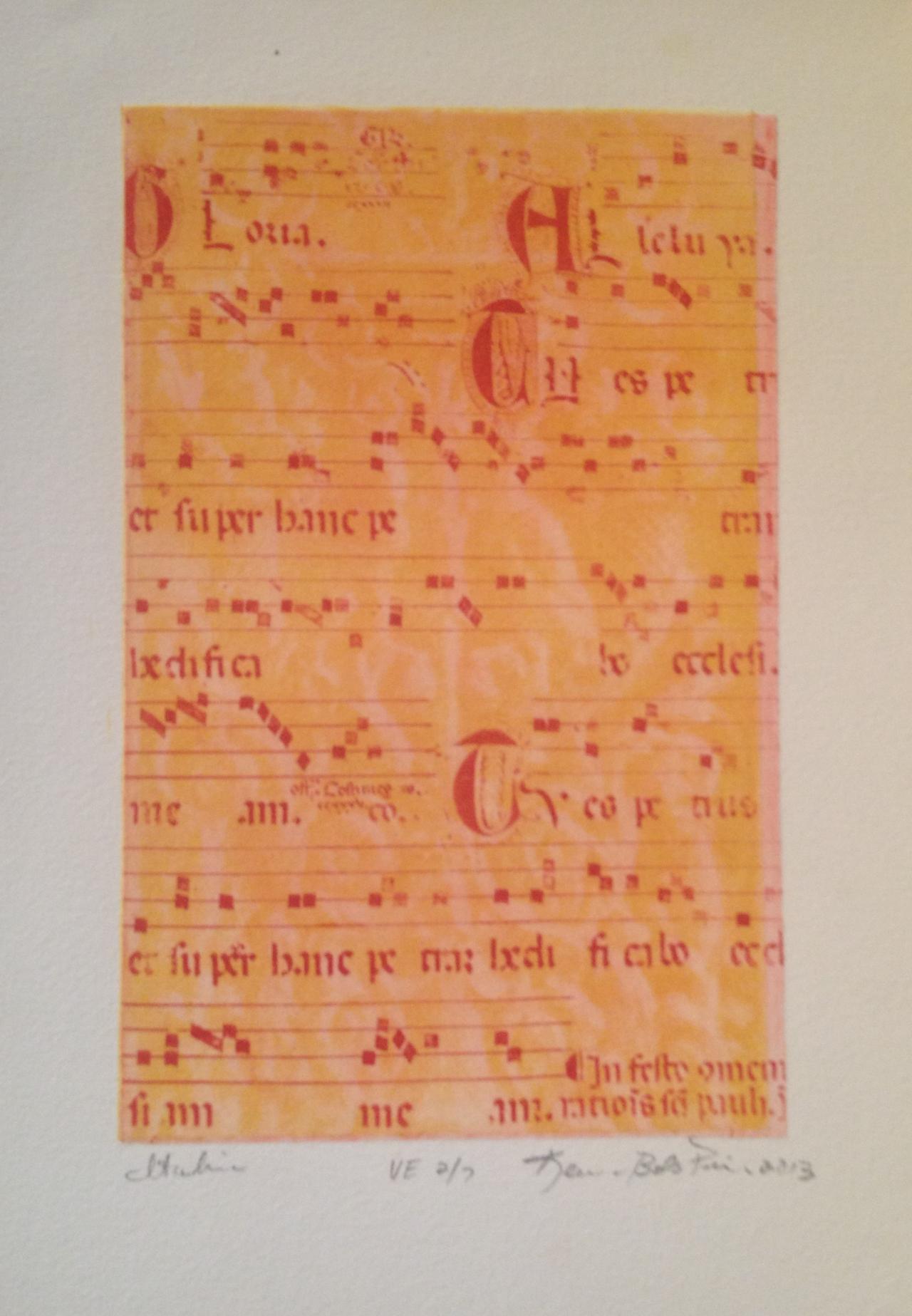 Photogravures are a process where photographs, or slides, or other such elements are used under a UV light to transfer an image onto a type of polymer plate. This is a similar process to a photograms on photopapers of the past.